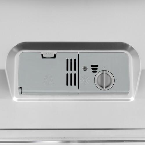Посудомоечная машина Hyundai DT505 белого цвета имеет интуитивно понятную панель на верхней части корпуса. Для удобства предусмотрен дисплей и индикатор наличия соли и ополаскивателя. Для эффективной очистки предусмотрено шесть программ, которые отличаются температурой нагрева и временем работы.