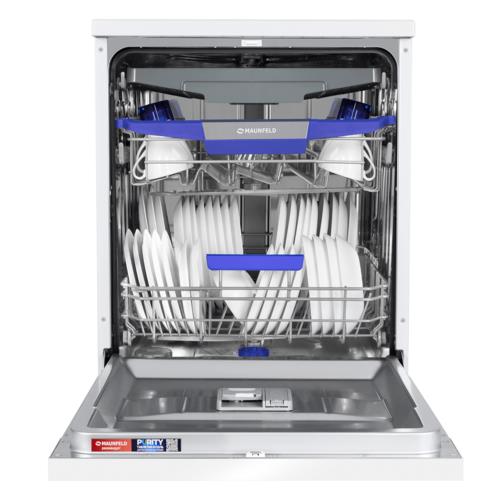 Полноразмерная отдельностоящая посудомоечная машина MAUNFELD подойдёт большим семьям, тем кто любит часто готовить или принимать гостей. Она избавит вас от необходимости мыть посуду вручную. Машина имеет 3 корзины и вмещает в себя до 14 комплектов посуды. Тихий инверторный двигатель позволит использовать её в ночное время.