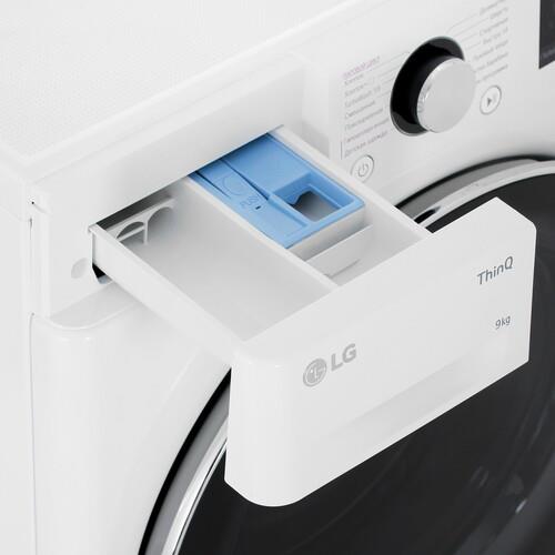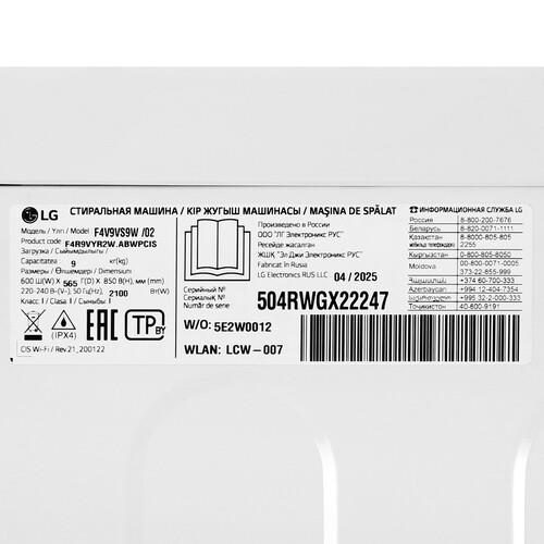 Стиральная машина LG F4V9VS9W белого цвета рассчитана на загрузку до 9 кг белья. Модель поддерживает 12 программ стирки – TurboWash 59, быстро 14 мин, гипоаллергенная, деликатная, моя программа, повседневная, пуховые вещи, смешанная стирка, спортивная, хлопок, хлопок + и шерсть. Функциональные особенности устройства – дозагрузка белья и обработка паром. Максимальная частота вращения барабана при отжиме – 1400 об/мин.