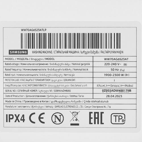 Стиральная машина Samsung WW70AG6S23ATLP: чистота и комфорт в каждом цикле