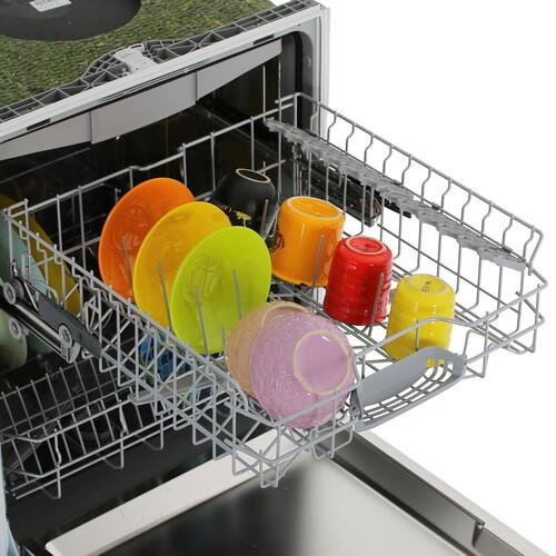 Bosch SMV25EX02E поддерживает 5 программ мойки и 4 температурных режима. Предусмотрен режим сокращения длительности программ, что позволяет экономить время. Для сушки устройство задействует теплообменник: в результате циркуляции воздуха внутри аппарата капли воды испаряются. Для размещения посуды внутри машины установлены 3 корзины. Регулировка верхнего короба по высоте позволяет оптимизировать внутреннее пространство. Нижний короб имеет направляющие для удобного размещения тарелок.
