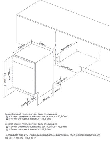 Вес посудомоечной машины