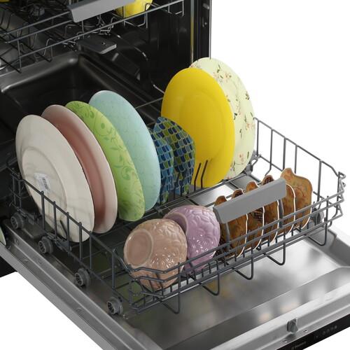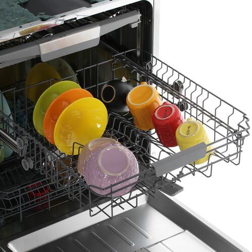 Встраиваемая посудомоечная машина Hansa ZIM667ELH на 14 комплектов посуды оснащена тремя регулируемыми по высоте корзинами и лотком для столовых приборов. Вы можете использовать 7 программ мойки, режим замачивания и таймер отсрочки на 24 часа. За 1 цикл ПММ потребляет 747 Вт·ч и 9.8 л воды.