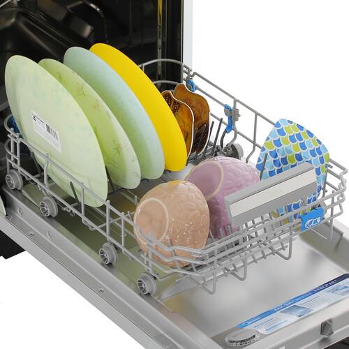 Встраиваемая посудомоечная машина Midea MID45S350i осуществляет бережную очистку столовых принадлежностей из хрупких материалов, снижает расходы на водо- и энергоснабжение, удаляет стойкие пятна. Достаточно выбрать подходящую среди 9 программ. Доступ к параметрам открывается через кнопочную панель или приложение MSmartHome. Заданные настройки транслируются на дисплее.