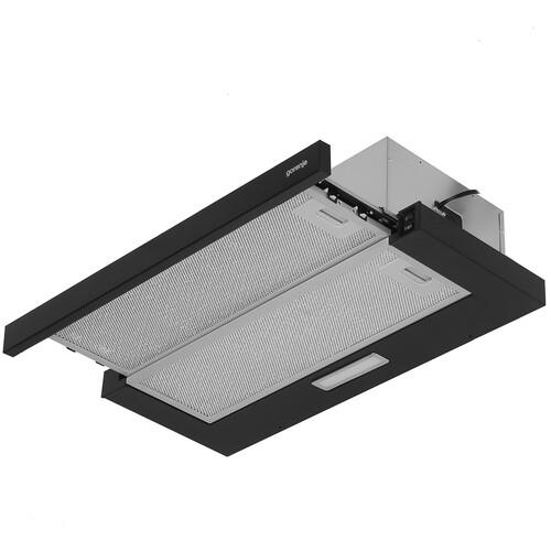 Вытяжка Gorenje TH606E4B с телескопической конструкцией предназначена для размещения в шкафу над плитой. Два скоростных режима позволяют настраивать интенсивность очистки воздуха от пара, гари, неприятных запахов в процессе приготовления. Управление выполняется при помощи кнопок.
