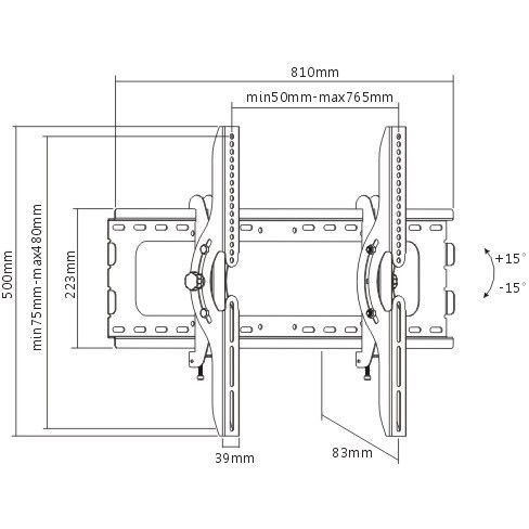 Угол наклона: +15/-15 °