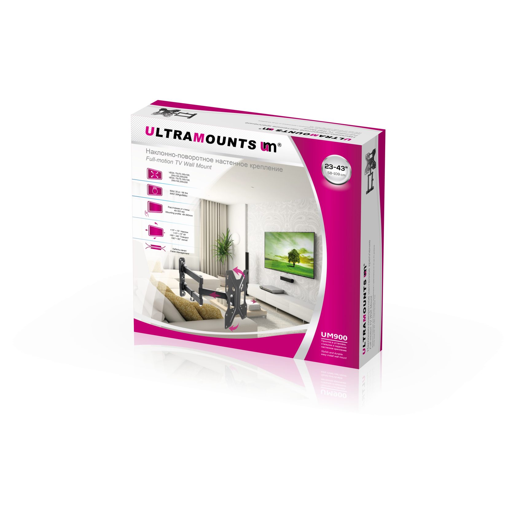 Диагональ экрана: 23" - 43"