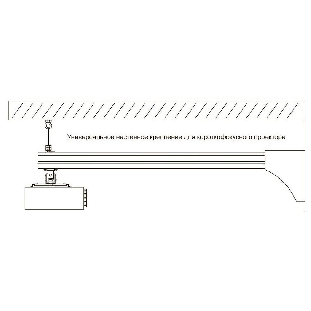 кабельный канал, длина штанги 130 см, проектор может находится в любом месте по всей длине штанги, страховочный трос в комплекте (2 места).