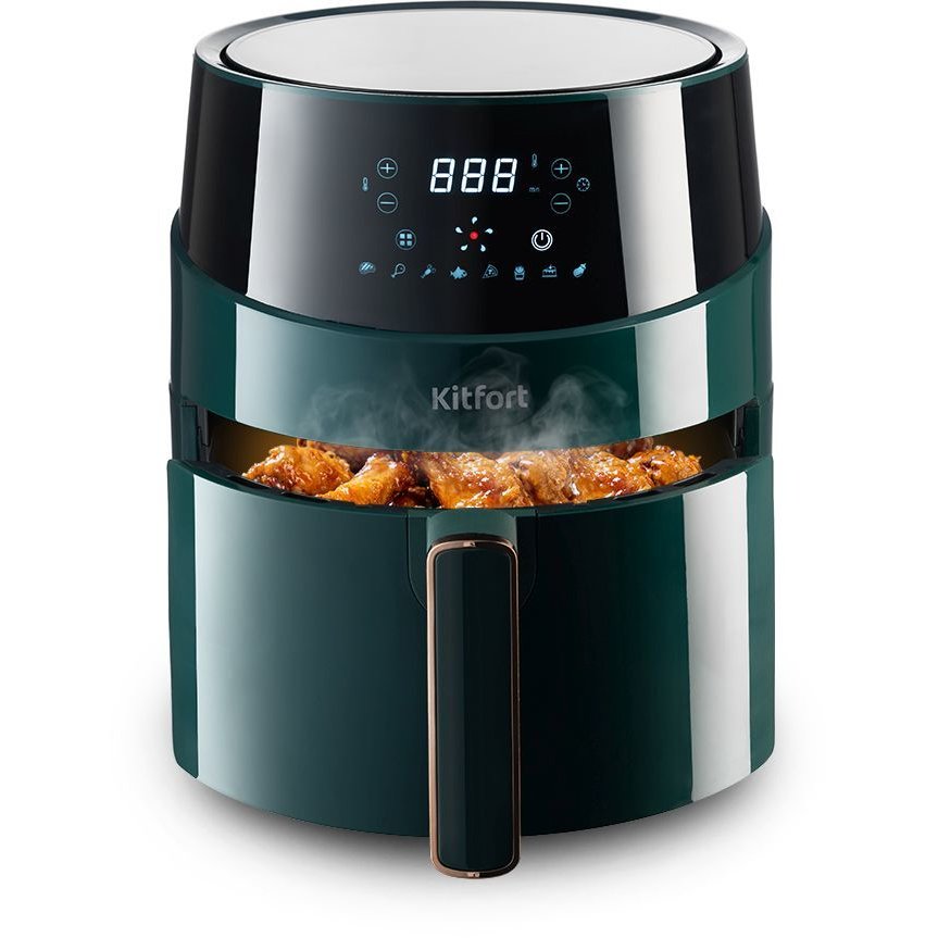 Современный аэрогриль Kitfort КТ-2222 может использоваться как аэрогриль, а также как аэрофритюрница и духовка и позволяет готовить большинство продуктов с минимальным количеством масла или вовсе без его добавления.