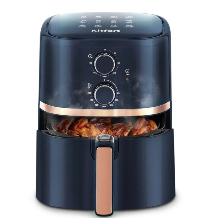 Современный аэрогриль КТ-8106 помогает в ежедневной готовке, беря на себя процесс выпечки, запекания или разморозки. А главный плюс – вам практически не понадобится масло, ведь аэрогриль использует систему обдува горячим воздухом.