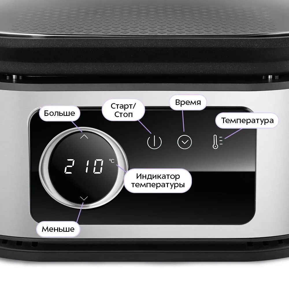 совмещает в себе функции двух устройств: аэрогриля и контактного гриля