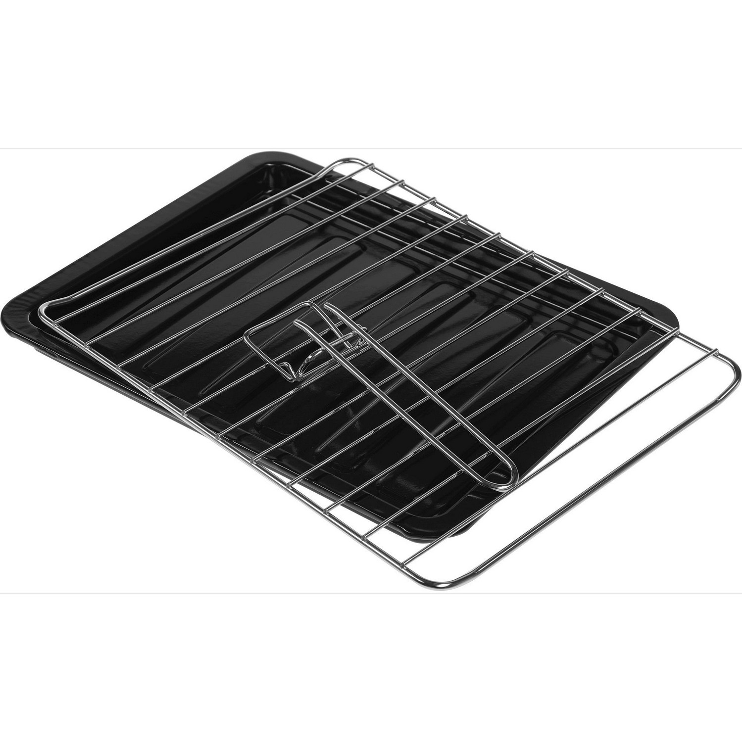 поддон для сбора крошек и масла, эмалированный противень, ухват для снятия противня, хромированная решетка гриль