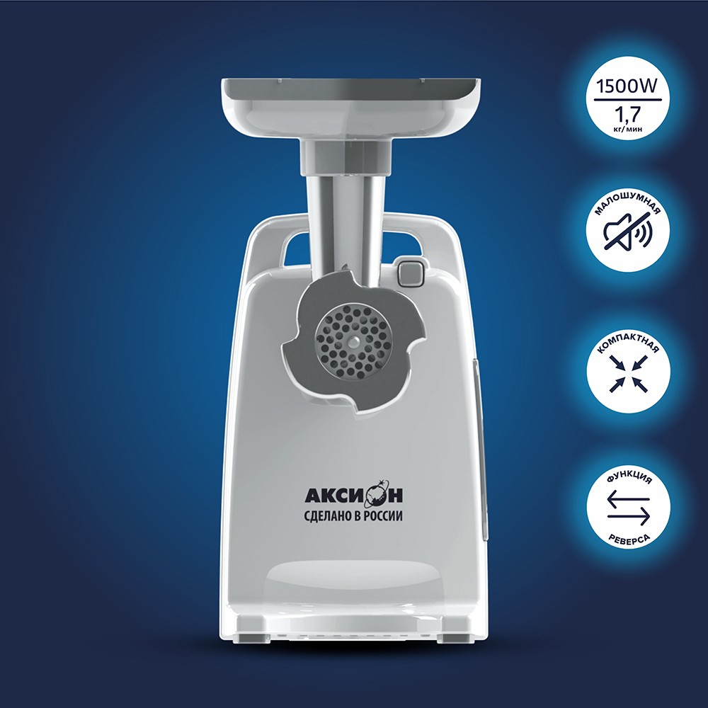 Первая малошумная электромясорубка М321 «Аксион». Благодаря низкому уровню шума, данную модель оценят родители с маленькими детьми - можно легко готовить пока ребенок спит. Отличается от всех линеек стильным дизайном и компактными размерами, она не требует дополнительного места хранения. Мясорубка легко помешается в стандартную полку.
