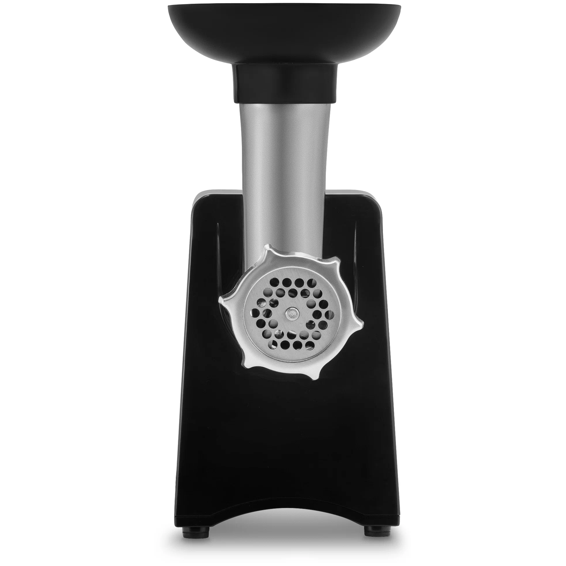 комплектация: мясорубка, головка мясорубки в сборе (с установленным шнеком, ножом, решёткой и гайкой), толкатель, лоток для продуктов, инструкция по эксплуатации; материал лотка: пластик
