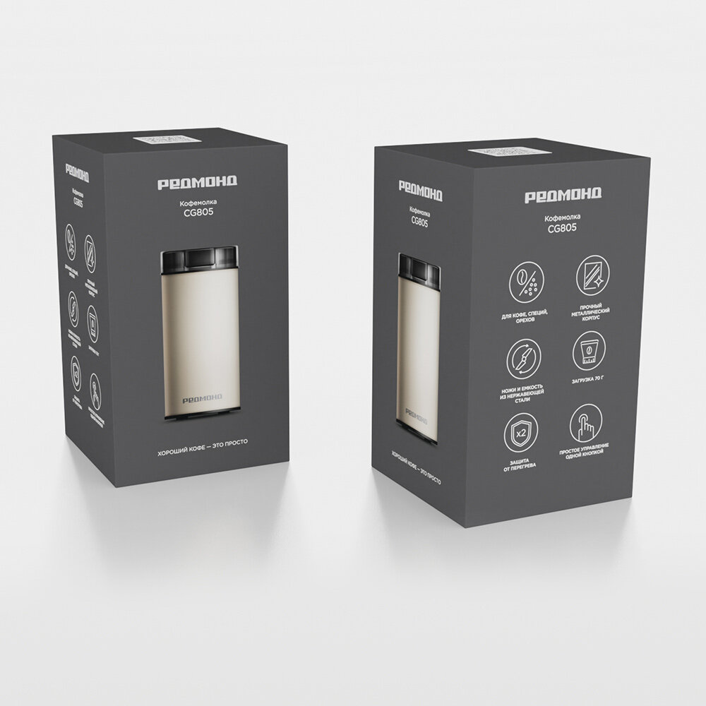 РЕДМОНД CG805 — стильная кофемолка в прочном металлическом корпусе с простым управлением одной кнопкой. Объема устройства хватит, чтобы за раз перемолоть 70 г кофейных зерен, специй или орехов. Прочные ножи из нержавеющей стали обеспечат качественный равномерный помол: все частицы будут одинакового размера. Система защиты от перегрева автоматически отключит прибор при критической нагрузке.