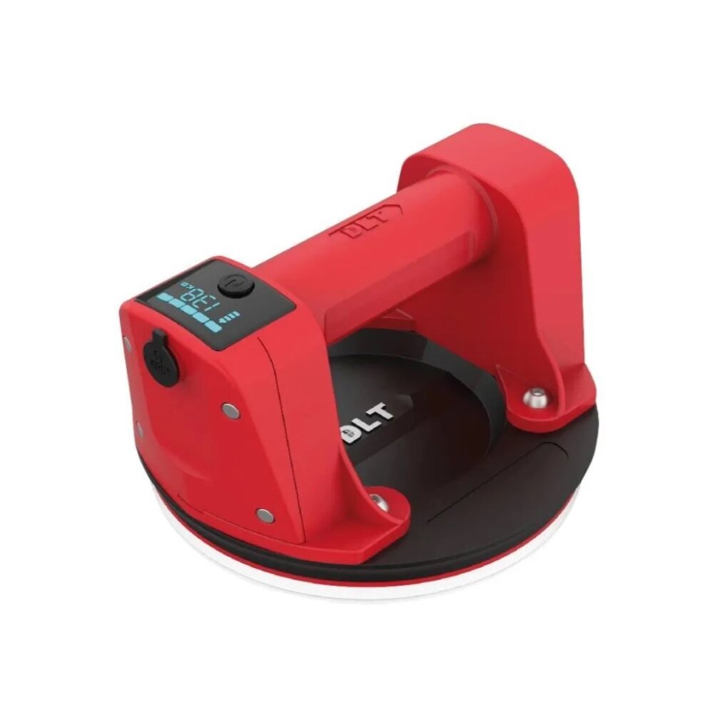 Присоска DLT VST-70 оснащена встроенным электрическим насосом, датчиком давления, дисплеем для визуального контроля уровня заряда батареи и массы удержания. Датчик давления анализирует силу разрежения воздуха и автоматически включает насос, когда требуется восстановить необходимые параметры вакуума (автоматическая подкачка).