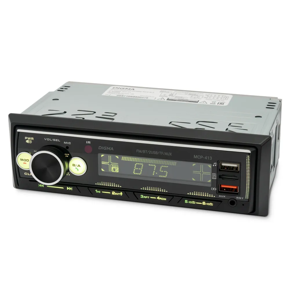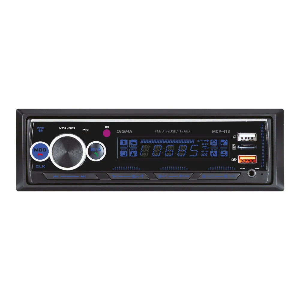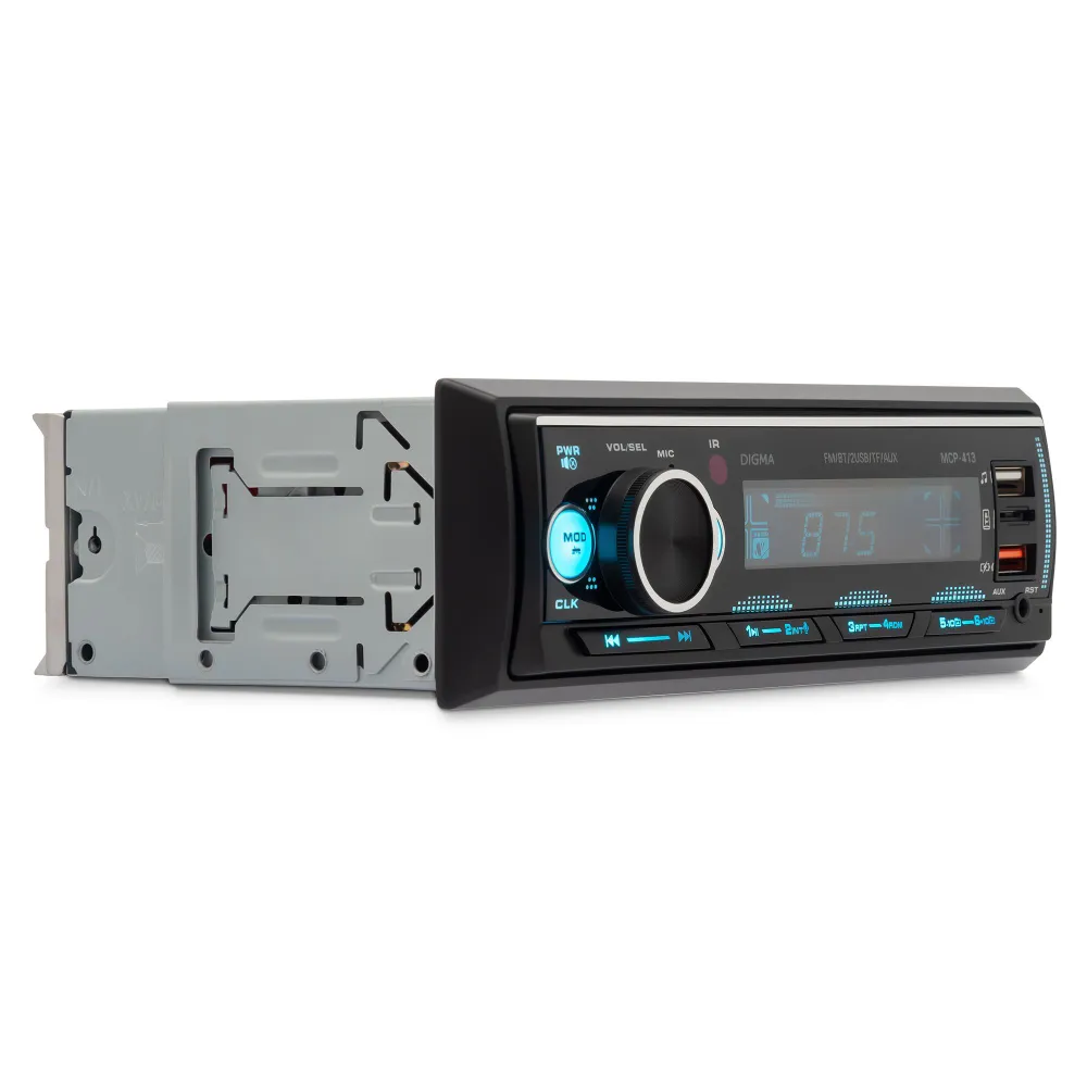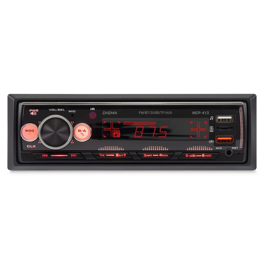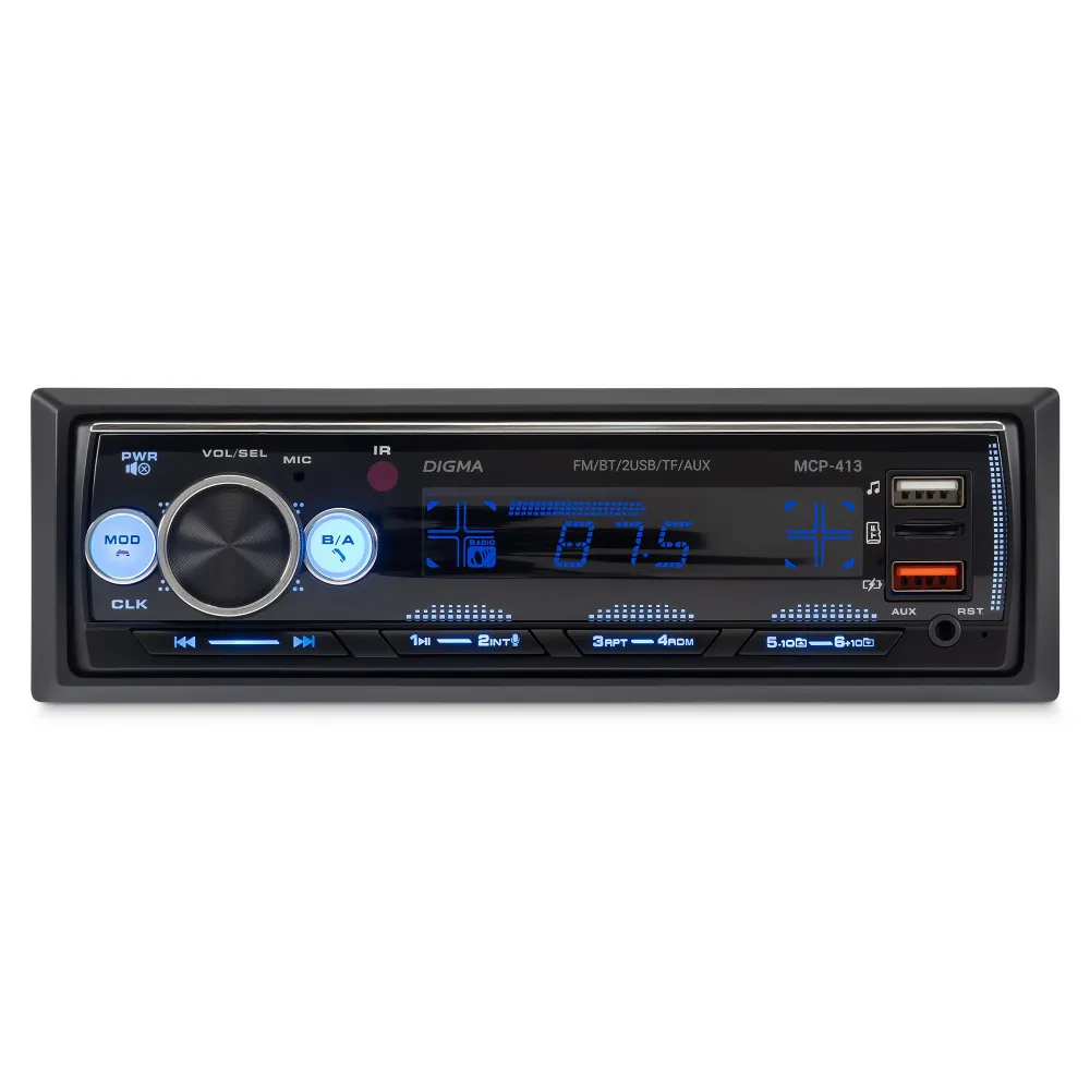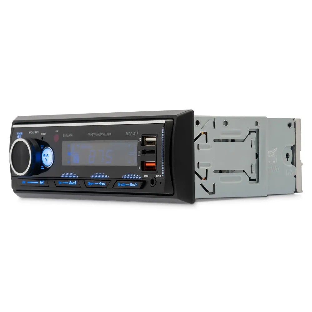 ЗвукРегулировки звукаГромкость воспроизведения, ЭквалайзерТехнические свойстваТипоразмер1 DINКоличество встроенной памяти, ГБ0Количество ядер0Передняя панельФиксированнаяКоличество каналов, шт.4Номинальная выходная мощность на канал, Вт45ОсобенностиUSB-вход на передней панелиЦвет подсветки кнопокбирюзовый, белый, голубой, зеленый, желтый, красный, лагунаФункцииBluetoothДаПульт ДУДаПоддерживаемые форматыMP3, FLACПоддержка RDSнетДиапазон радиоРасширенный FMСовместимые платформыiOS, AndroidОбщиеПартномер (артикул производителя)MCP-413БрендDigmaЭкранТип экранаLCDРазрешение экрана128x64Диагональ экрана4.0"ПитаниеНапряжение питания, В12Оперативная память, ГБ0Интерфейсы3.5 мм, Разъем для антенны (TV/F), USB Type-AЦветЧерный